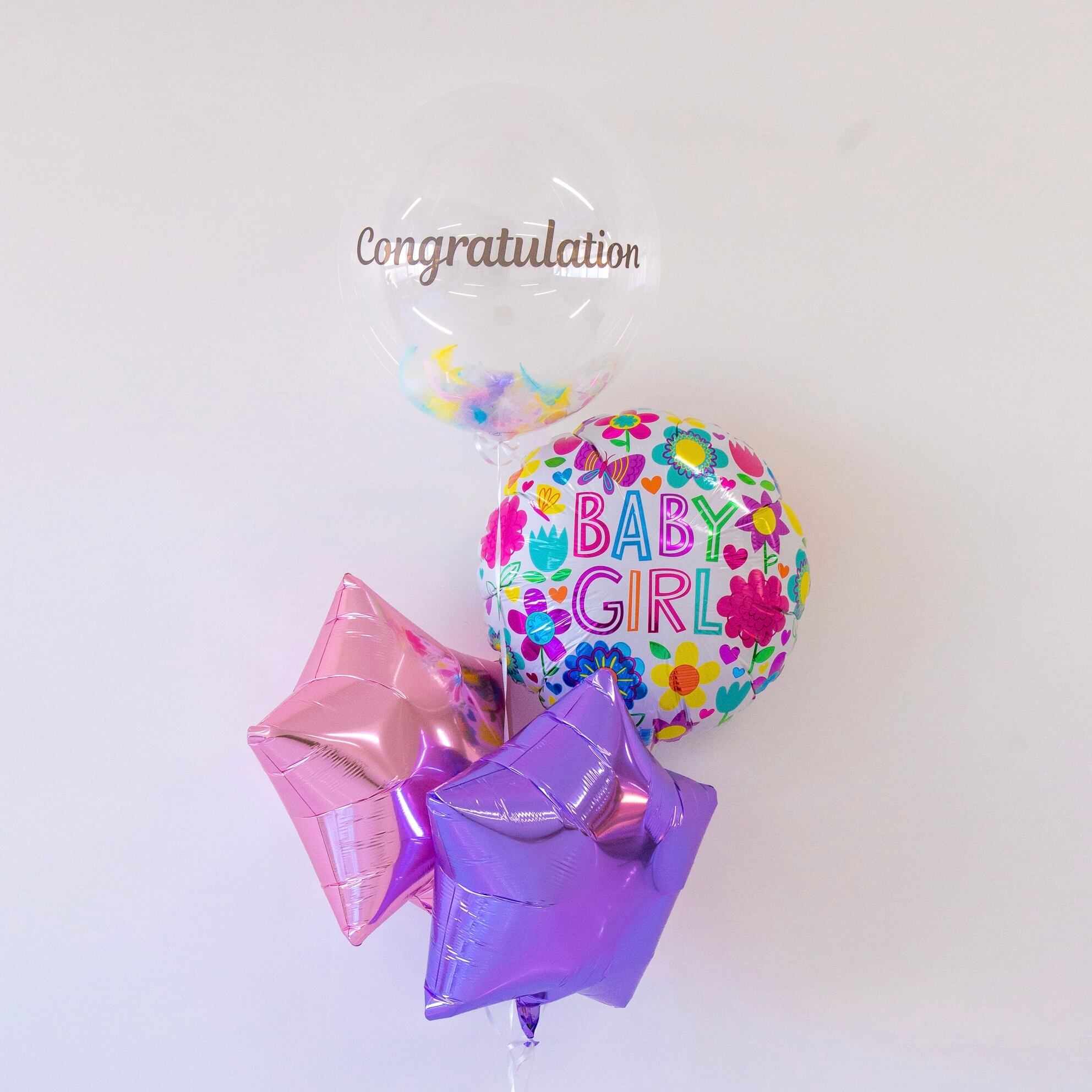 「BABY GIRL」の華やかなバルーンと組み合わせています。