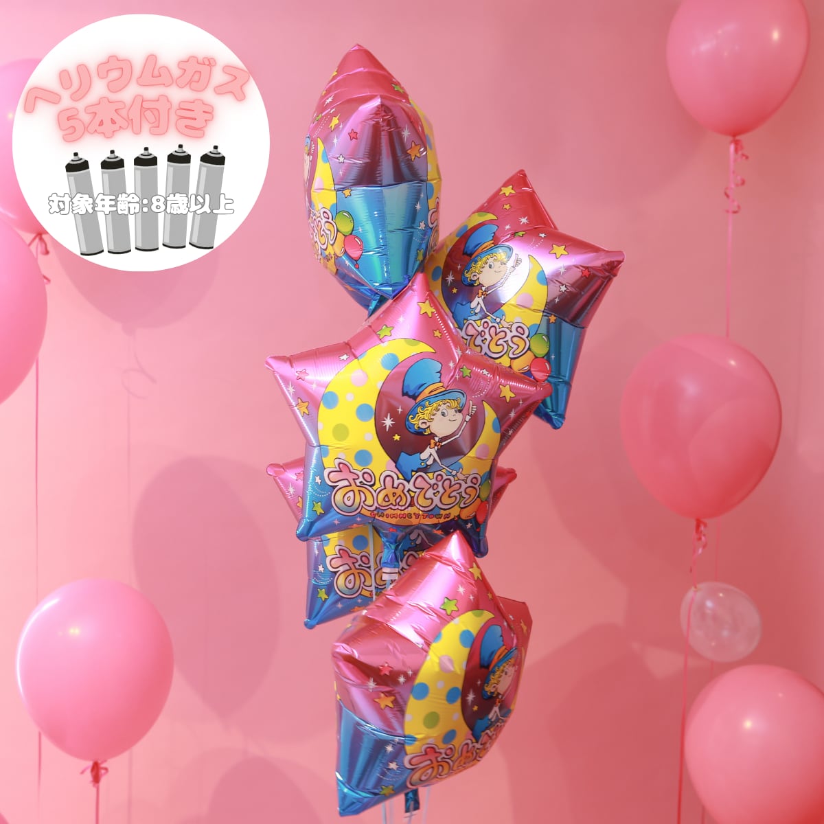 ※本商品は、「ルビッチのおめでとうバルーン(未充填)5個」+「ヘリウムガス缶 5本」をお届けする商品です。