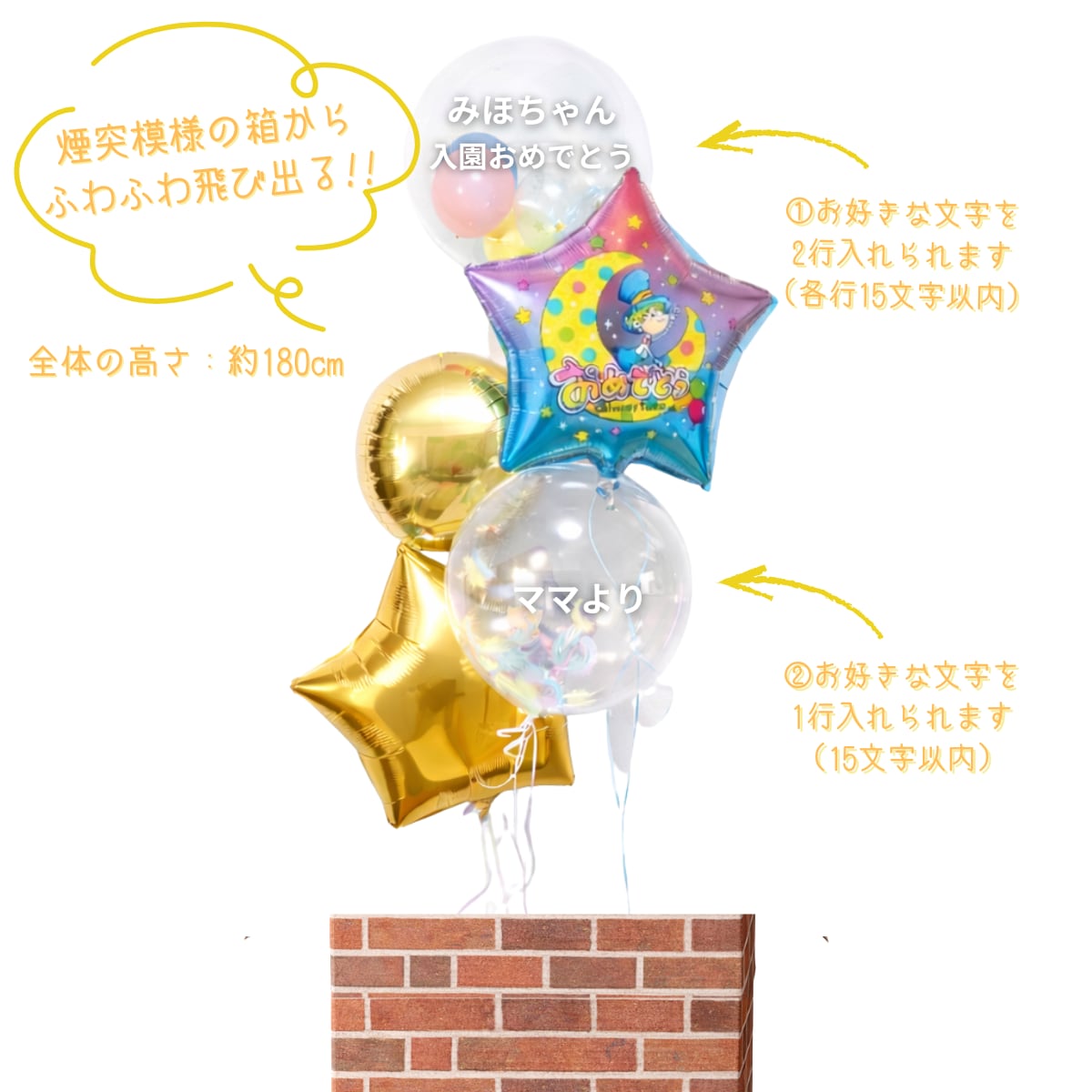 2つの透明のバルーンには、お好きなお名前やメッセージをお入れできます。